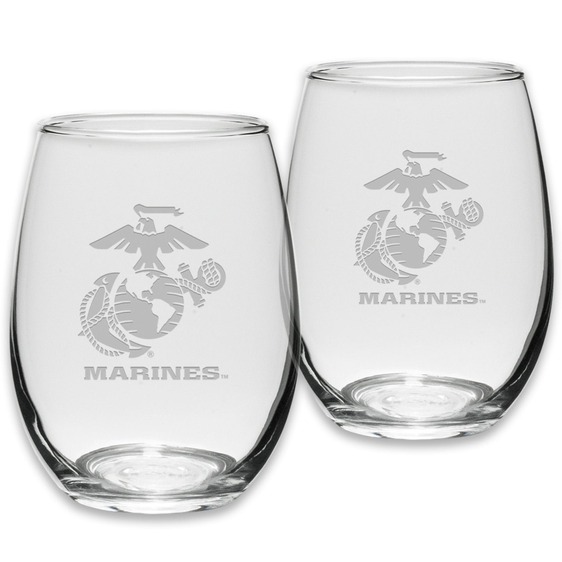 Elegant and versatile, the Marines EGA Set of Two 21oz Stemless Wine Glasses make a great gift or addition to your glassware collection!
