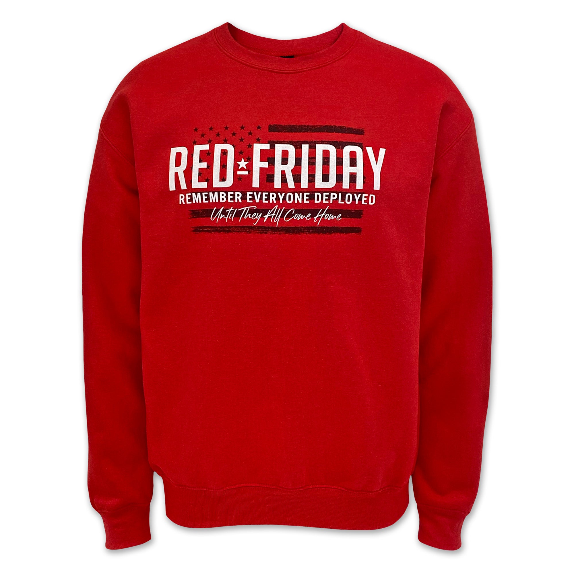 Show your support with the Red Friday Remember Everyone Deployed Crewneck. Crafted from soft, midweight fleece, this crewneck offers comfort while honoring those serving away from home. A simple, meaningful way to wear your gratitude every Friday—or any day of the week.