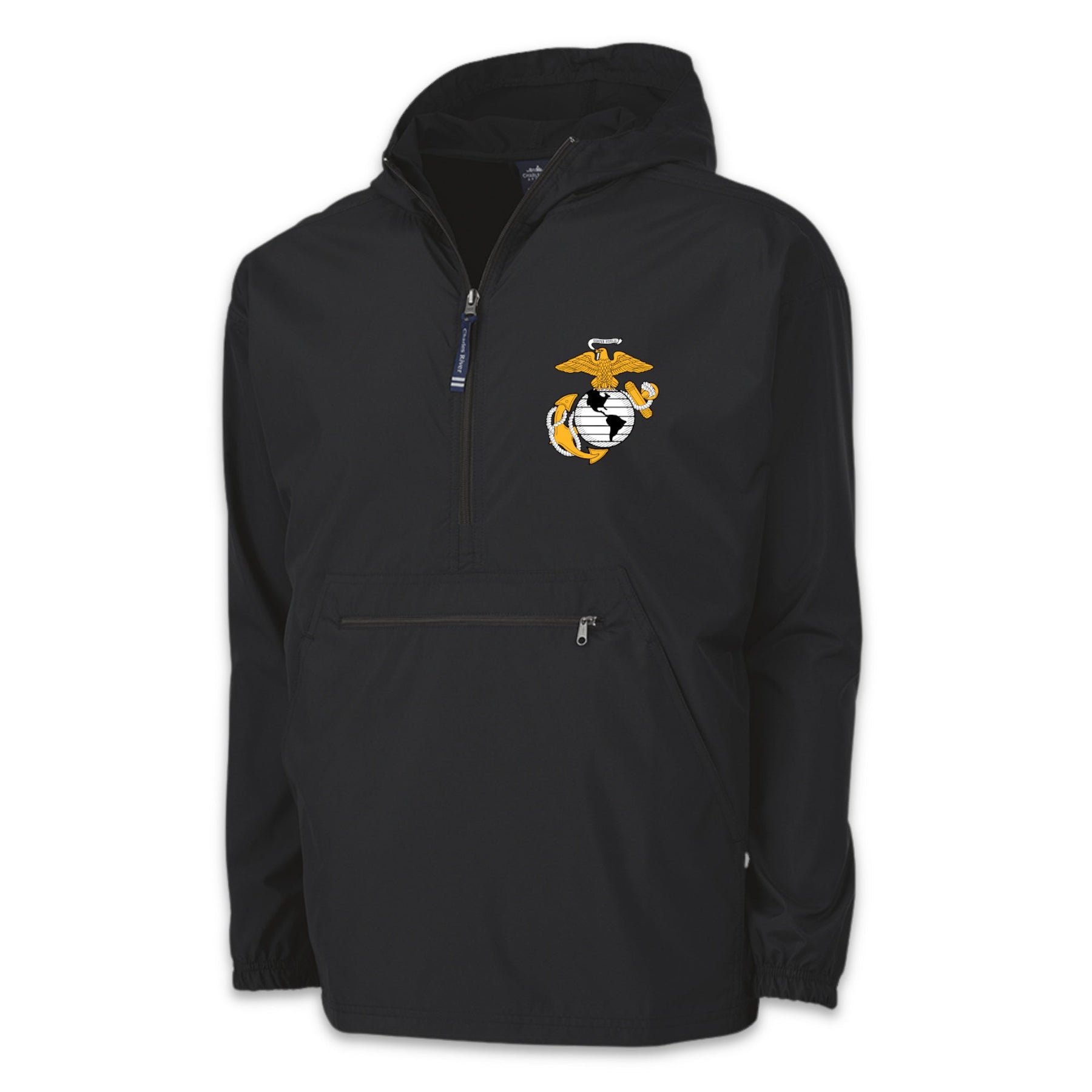Quality is in the details for the Marines EGA Youth Pack-N-Go Pullover! This weather resistant jacket is perfect for transitional seasons all while looking stylish!