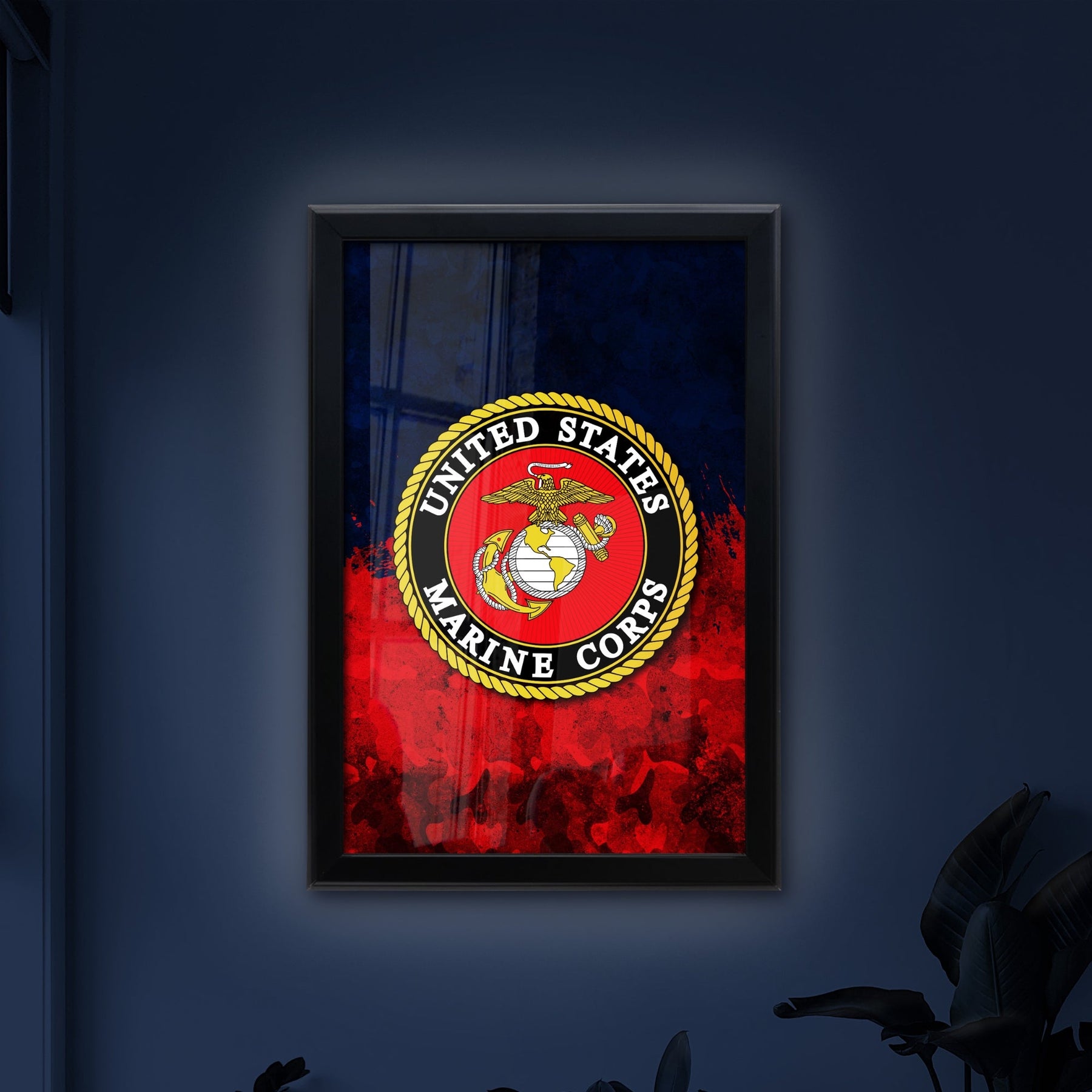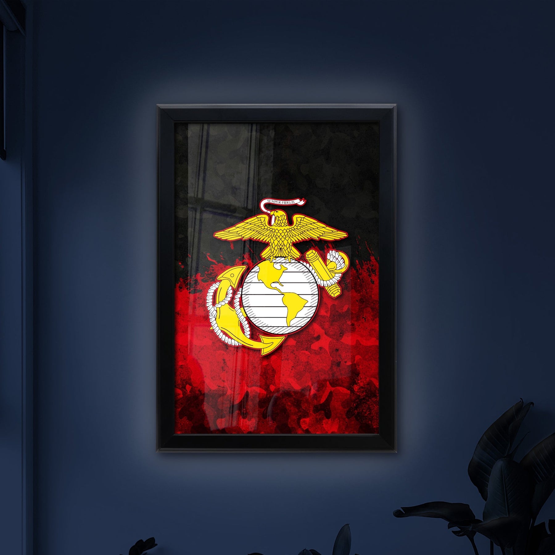 Show your military pride with this Marines EGA LED Snap Frame Lightbox! With it's simple but elegant design, colors burst through the digitally printed acrylic. An attention grabber, this lightbox is ideal for your office, garage, or any room of the house. Whether purchasing as a gift or for yourself, you can take satisfaction knowing you're buying a product that is proudly Made in the USA! Whether used for a nostalgic reminder or to accent any living or work space, this lightbox makes a great statement!
