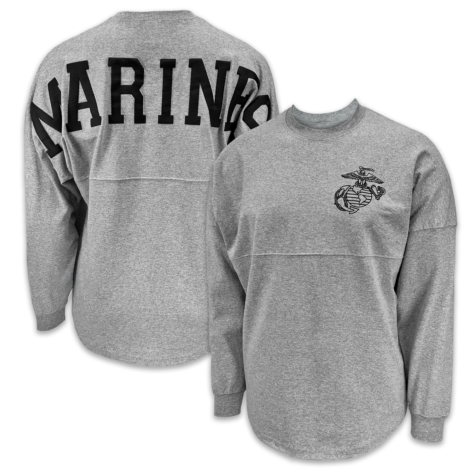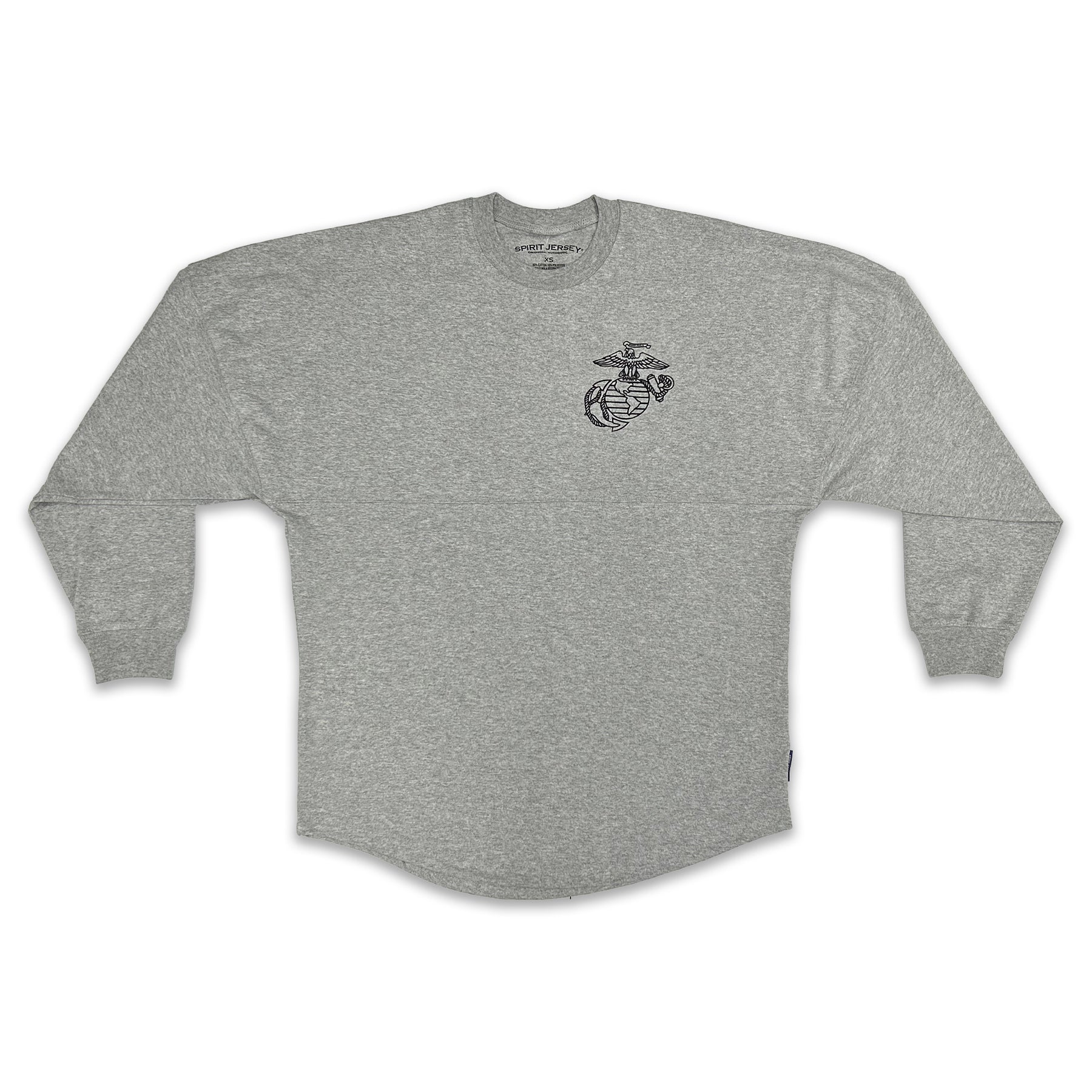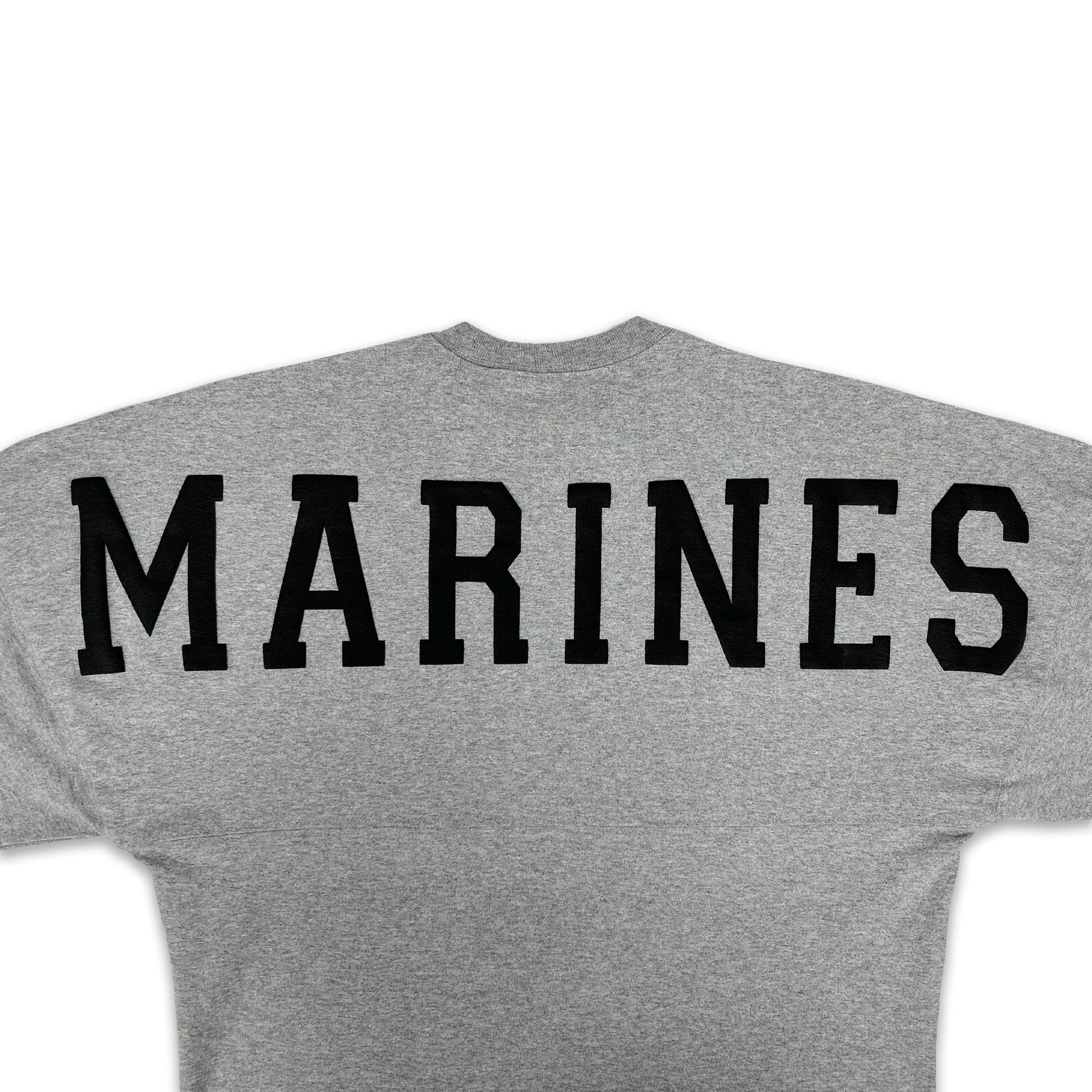 Show off your Marines pride in style with our Marines EGA Original Crew Neck Spirit Jersey! This comfortable, oversized-fit top features the iconic Marines wordmark across the back, making it perfect for any proud supporter.