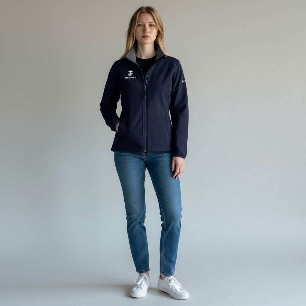 Take on any adventure with confidence in the Marines EGA Women's Columbia Kruser Ridge Jacket! Made from 100% polyester, this jacket is both water and wind resistant, keeping you protected from the elements. With contoured sleeve cuffs, an adjustable hem, and zippered pockets for secure storage, it's the perfect blend of style and performance. Stay warm, dry, and ready to show off your Marines pride!