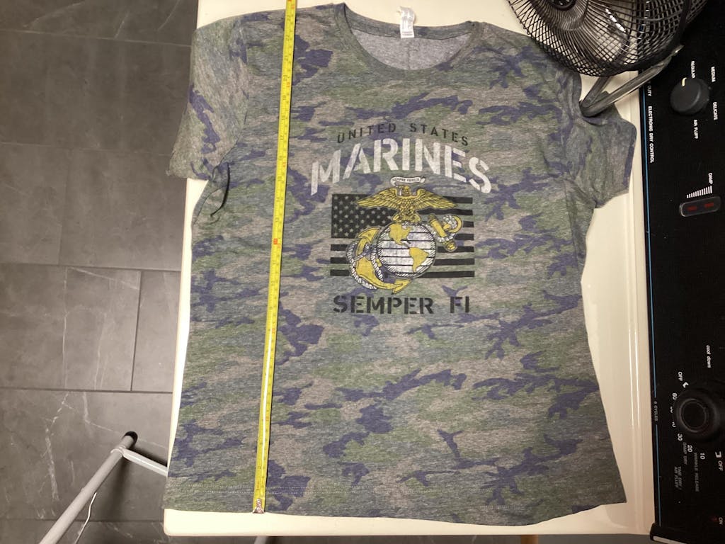 A favorite design on a fun camo T! The fashionable Marines Ladies Vintage Stencil T is a true must have!