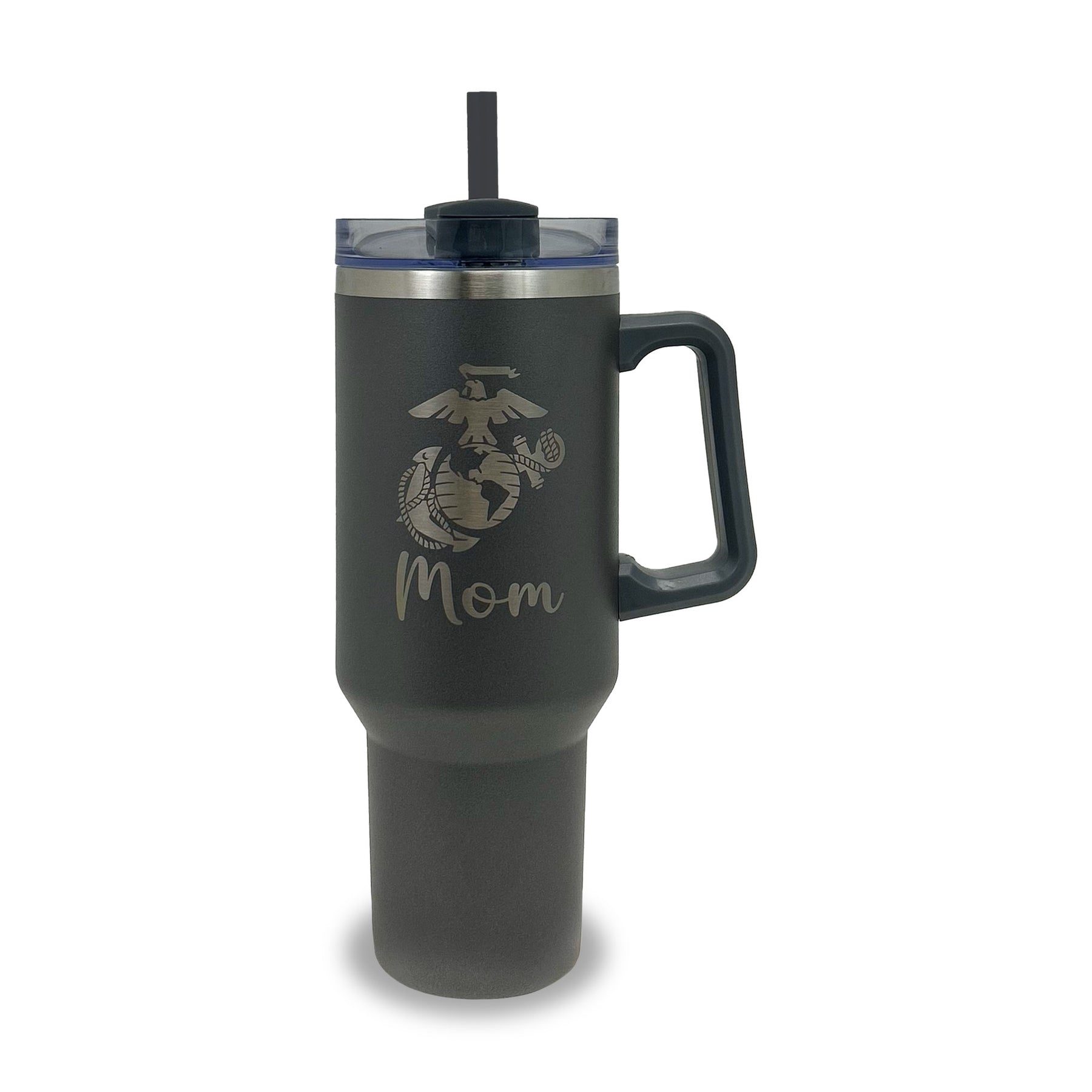 Show your pride wherever you go with this Marines Mom 40oz Stainless Steel Travel Mug—durable, double-walled, and ready to keep drinks hot or cold for hours. Featuring a laser etched design and convenient handle, it’s perfect for daily errands, road trips, and everything in between.