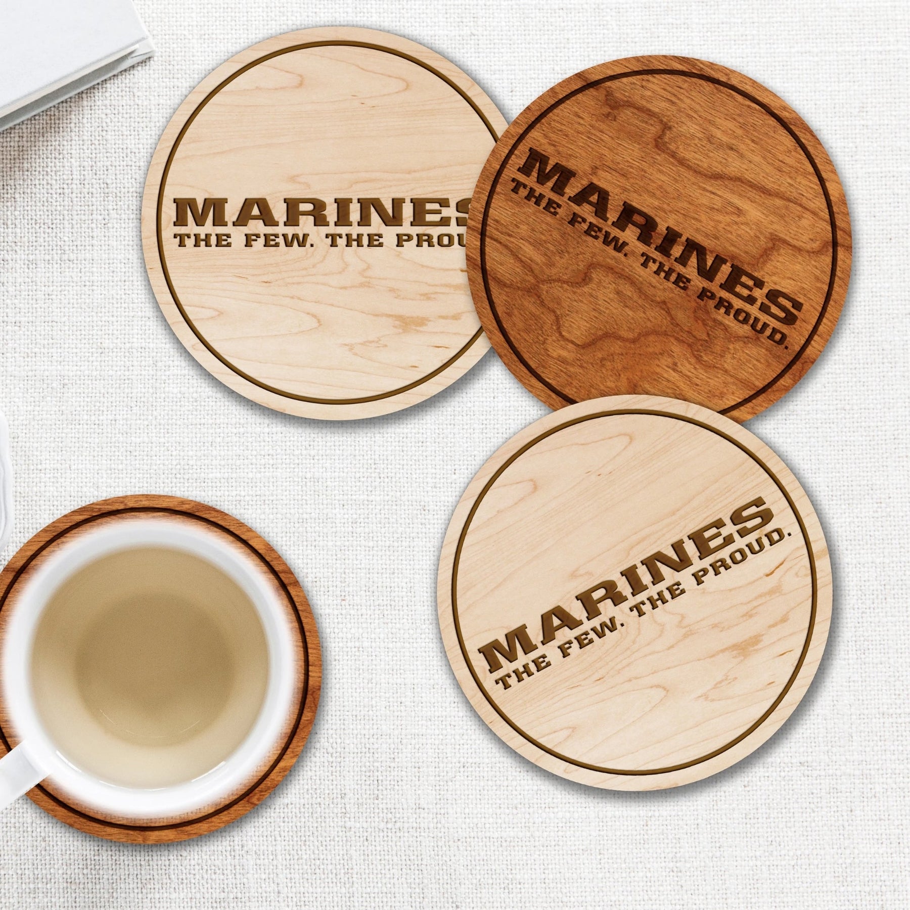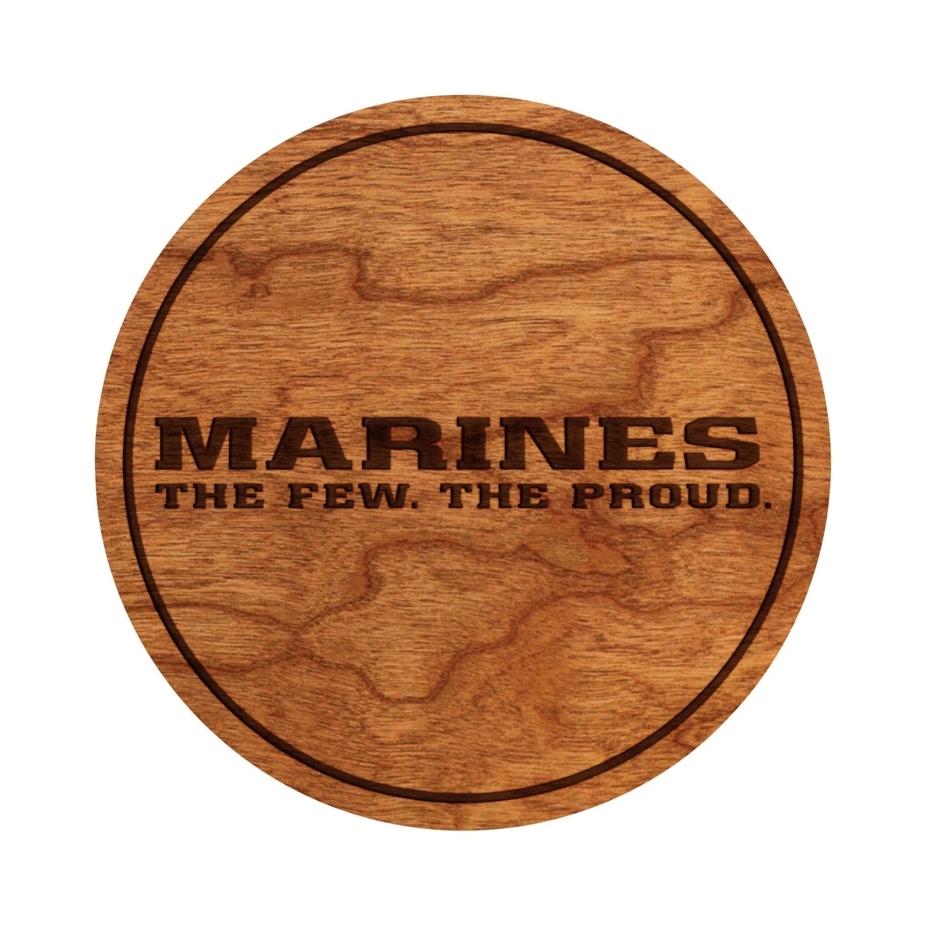 Show your Marines pride with this USA-made wooden coaster, crafted from premium cherry or maple wood. Each coaster is meticulously hand-selected for its grain and texture, ensuring a unique and eye-catching piece that embodies both durability and distinction.