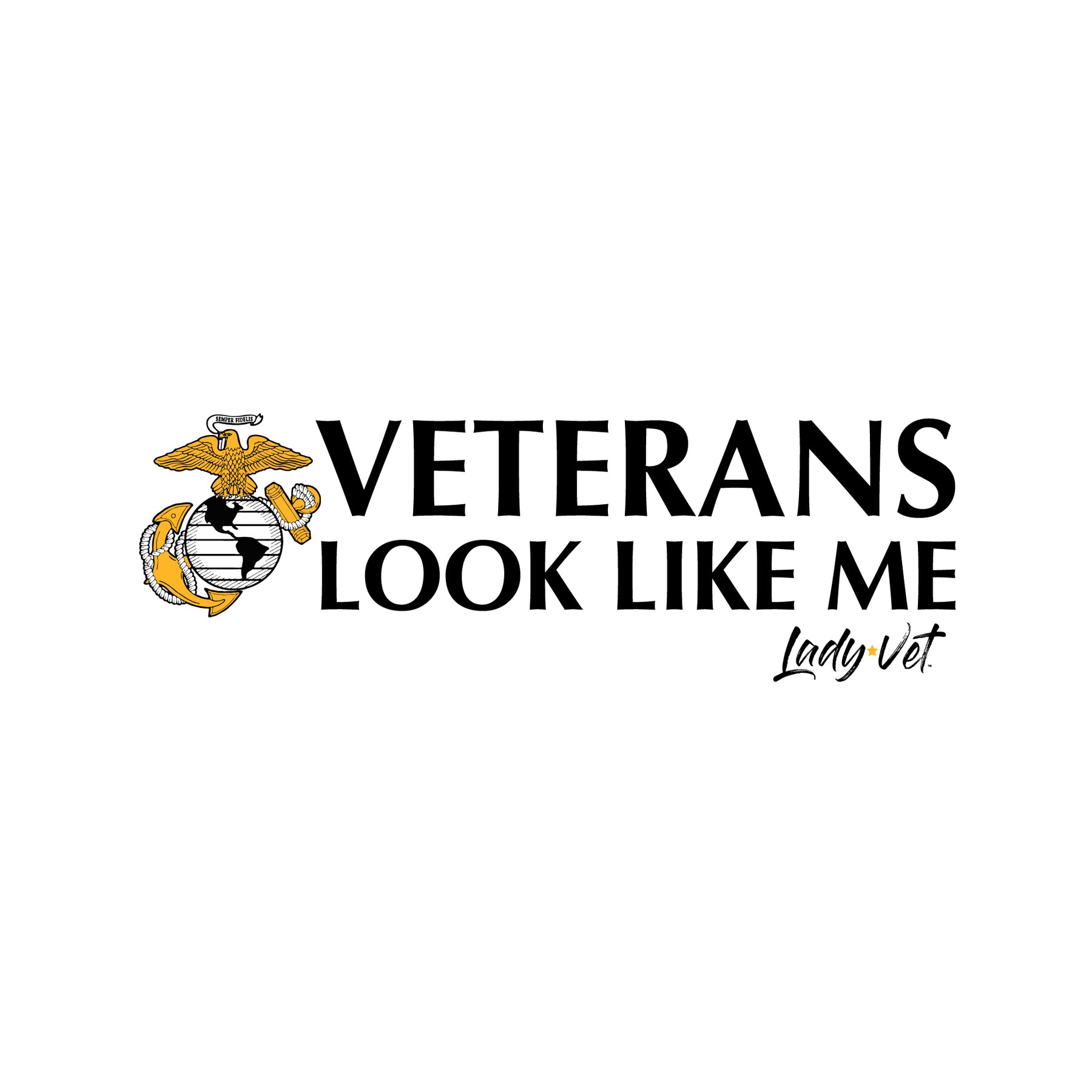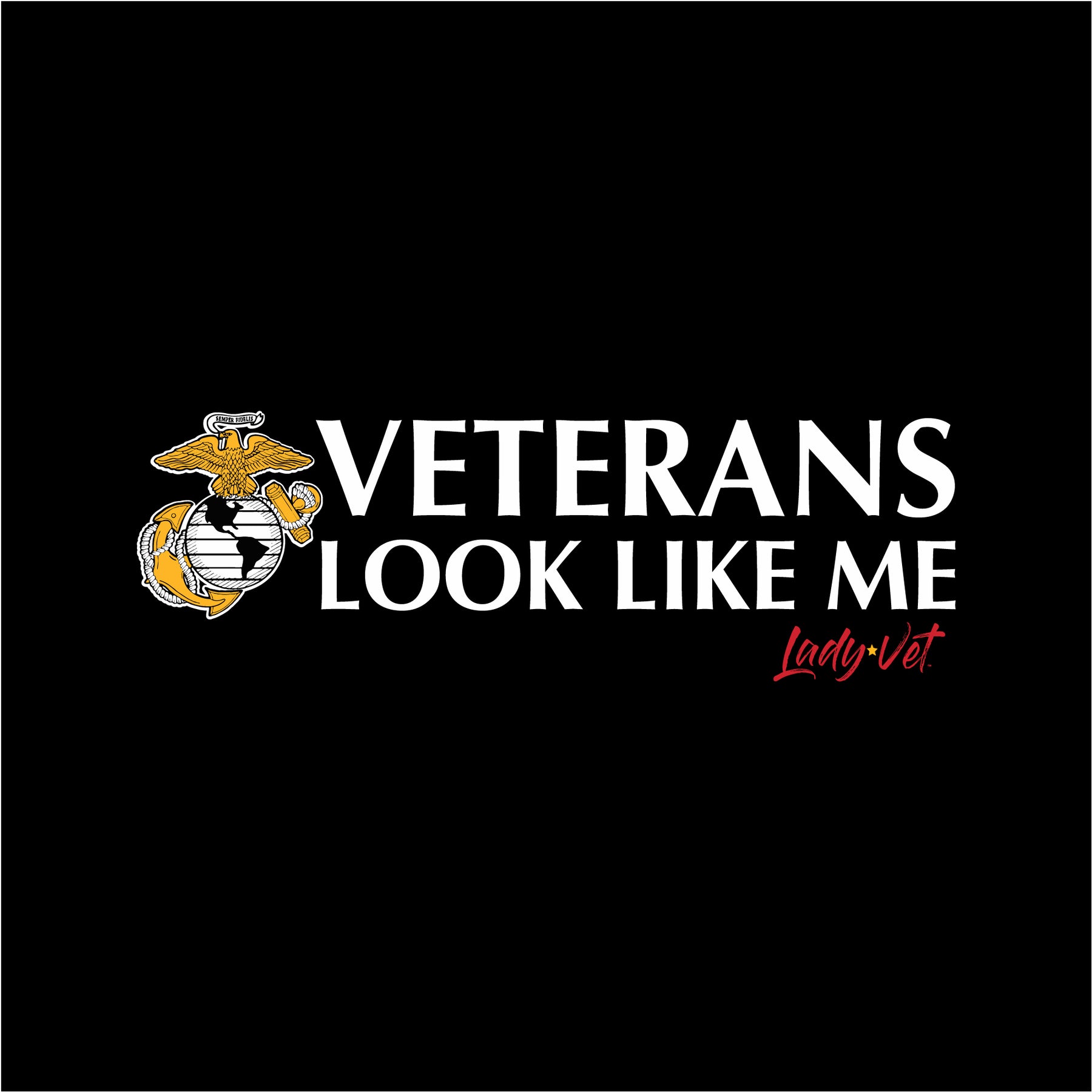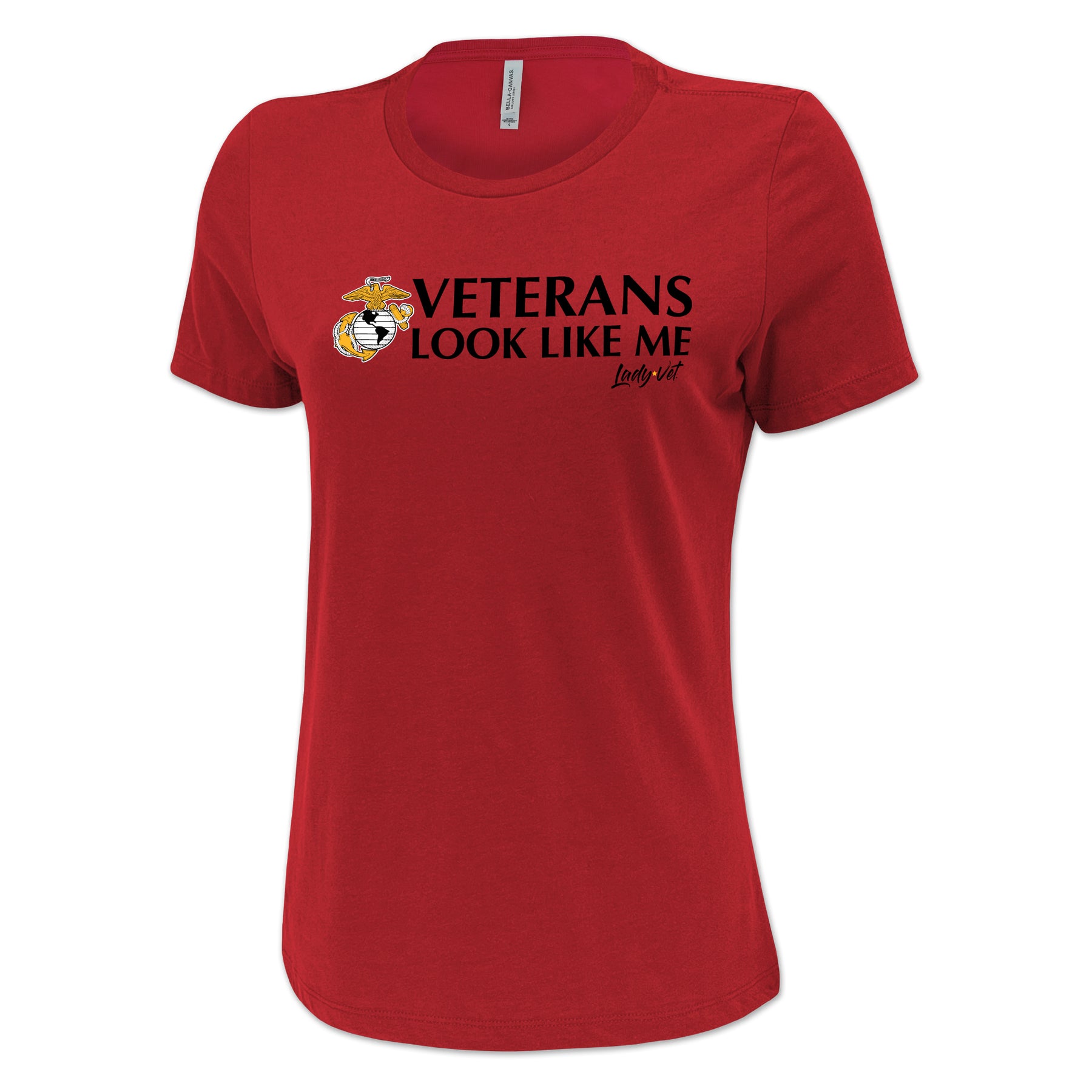 Lady Vet is a woman-owned, Veteran-owned brand created specifically to challenge public assumption of what a Veteran looks like. Show your support or wear it proudly; the Marines Vet Looks Like Me Ladies T-Shirt!