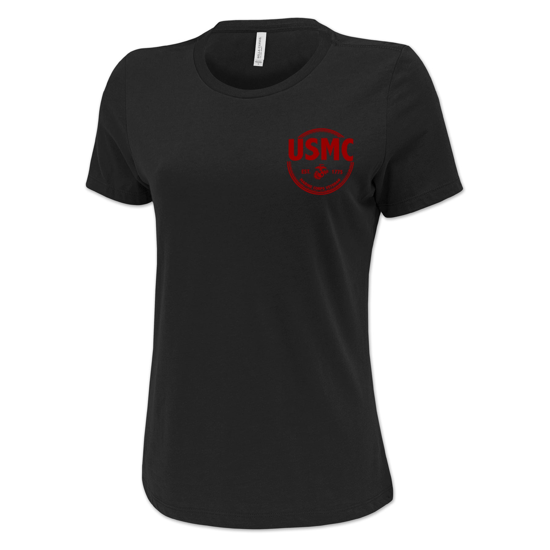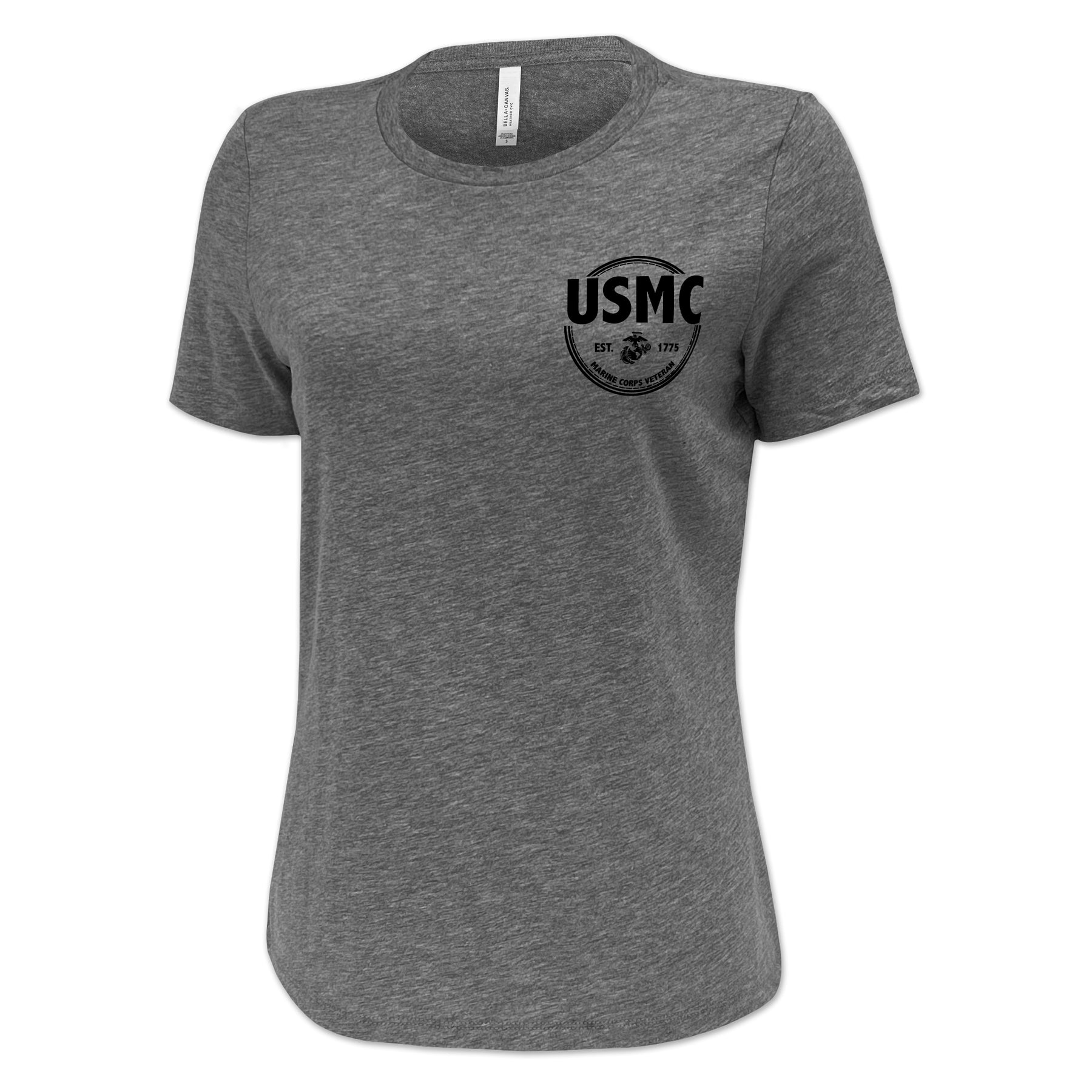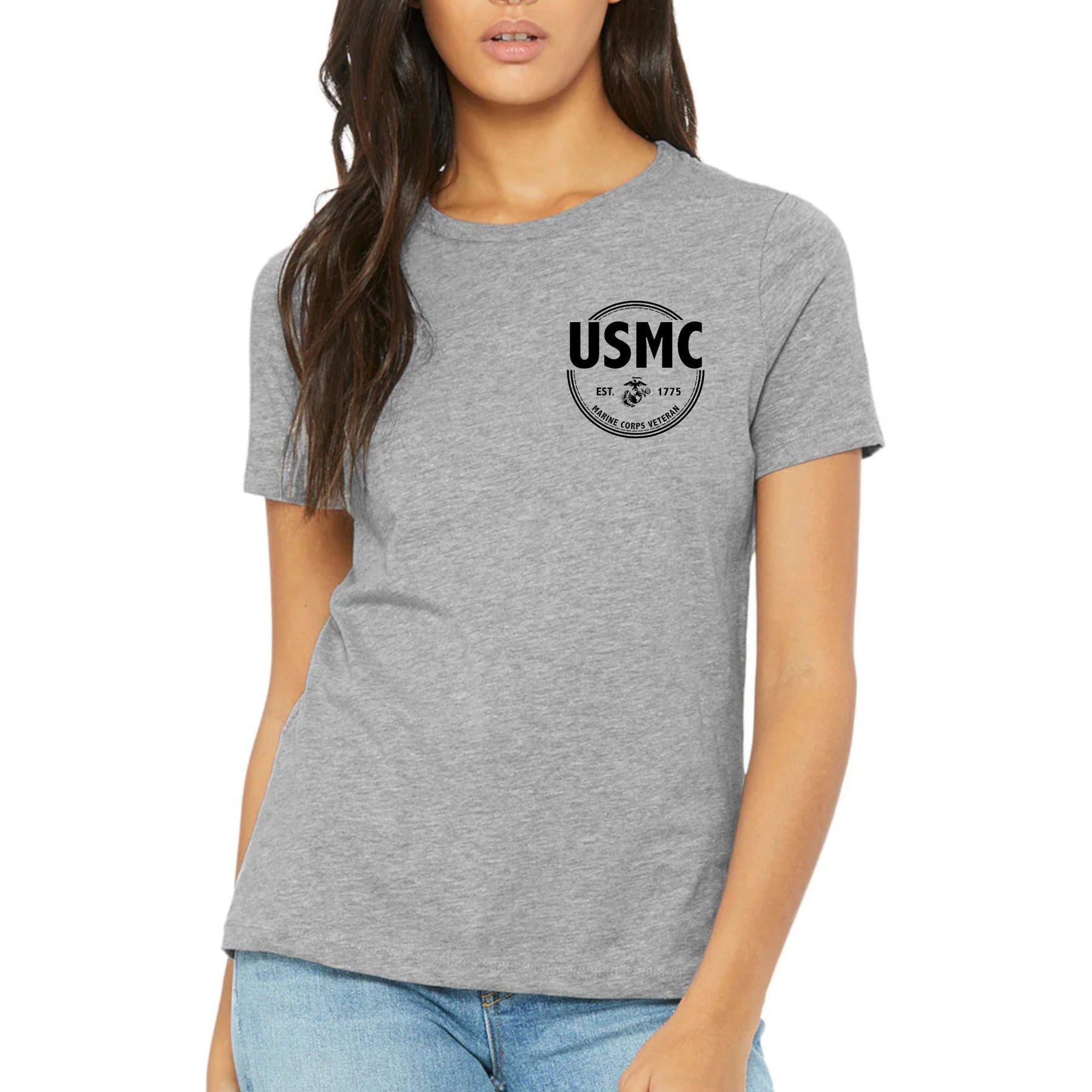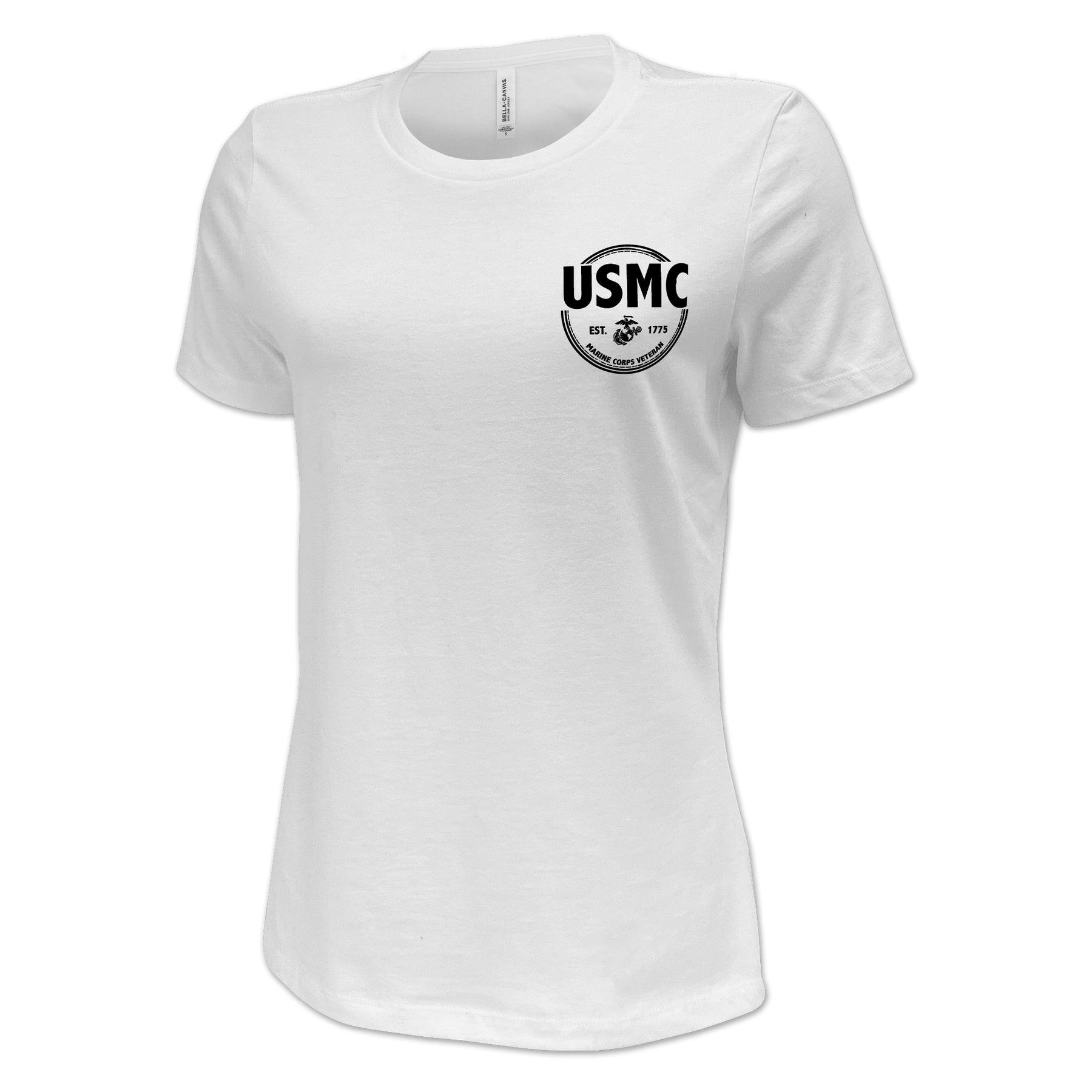 This Marines Veteran Left Chest Ladies T-Shirt is a tribute to the brave women who have served in the Marine Corps. Featuring an all new design on the left chest, this shirt combines style and patriotism to honor the service and sacrifice of female Marines vets with a comfortable and expressive piece of apparel.