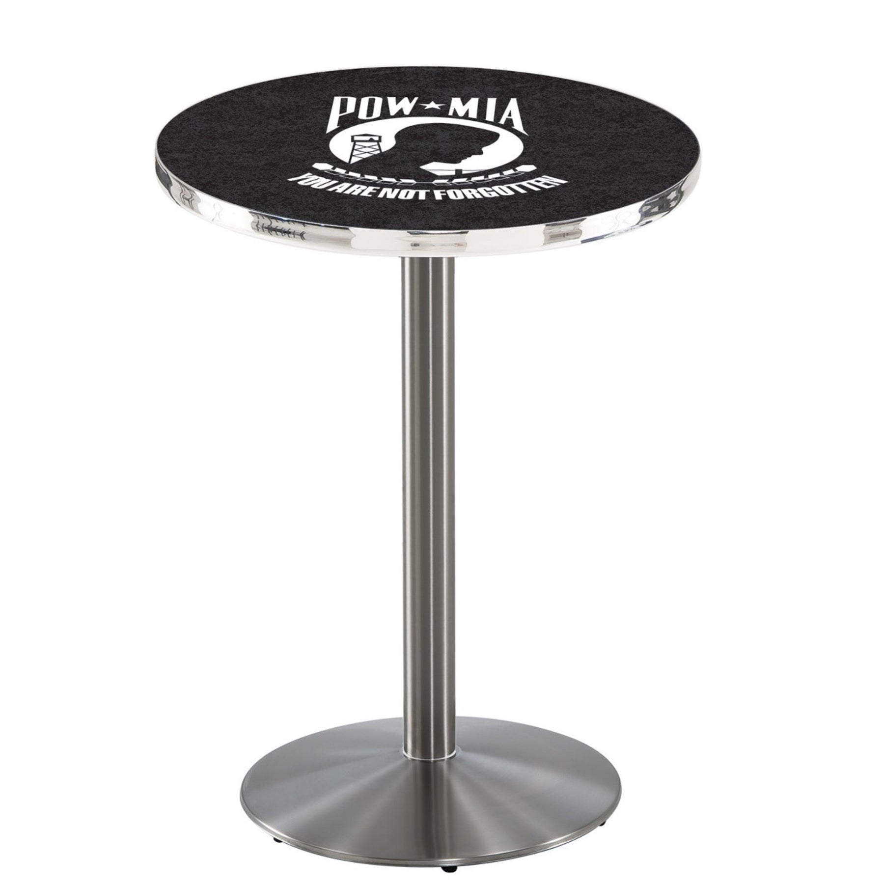 Give your space a patriotic touch with the POW/MIA Pub Table. Its sublimated laminate top ensures bright colors without worry of food or particles infiltrating the surface, and its American craftsmanship guarantees lasting quality. Introduce contemporary style to any room with this Pub Table!