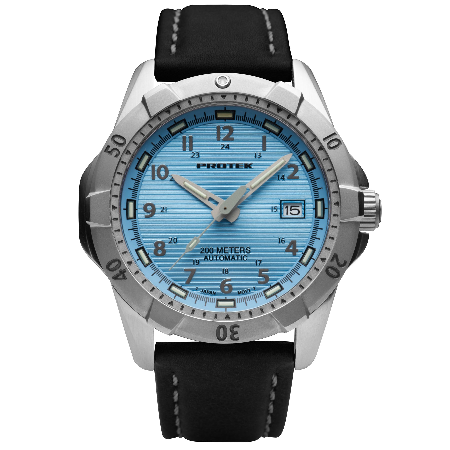 This 42mm stainless steel dive watch delivers precision and reliability, featuring a 120-click unidirectional bezel, 200-meter water resistance, and a robust Seiko/TMI 24-jewel automatic mechanical movement. The Swiss Pro-Glo T25 tritium illumination ensures 25 years of continuous glow, offering superior visibility in low-light conditions. Complemented by a waterproof Italian leather strap and a scratch-resistant sapphire crystal, this watch is a perfect combination of rugged performance and classic elegance.