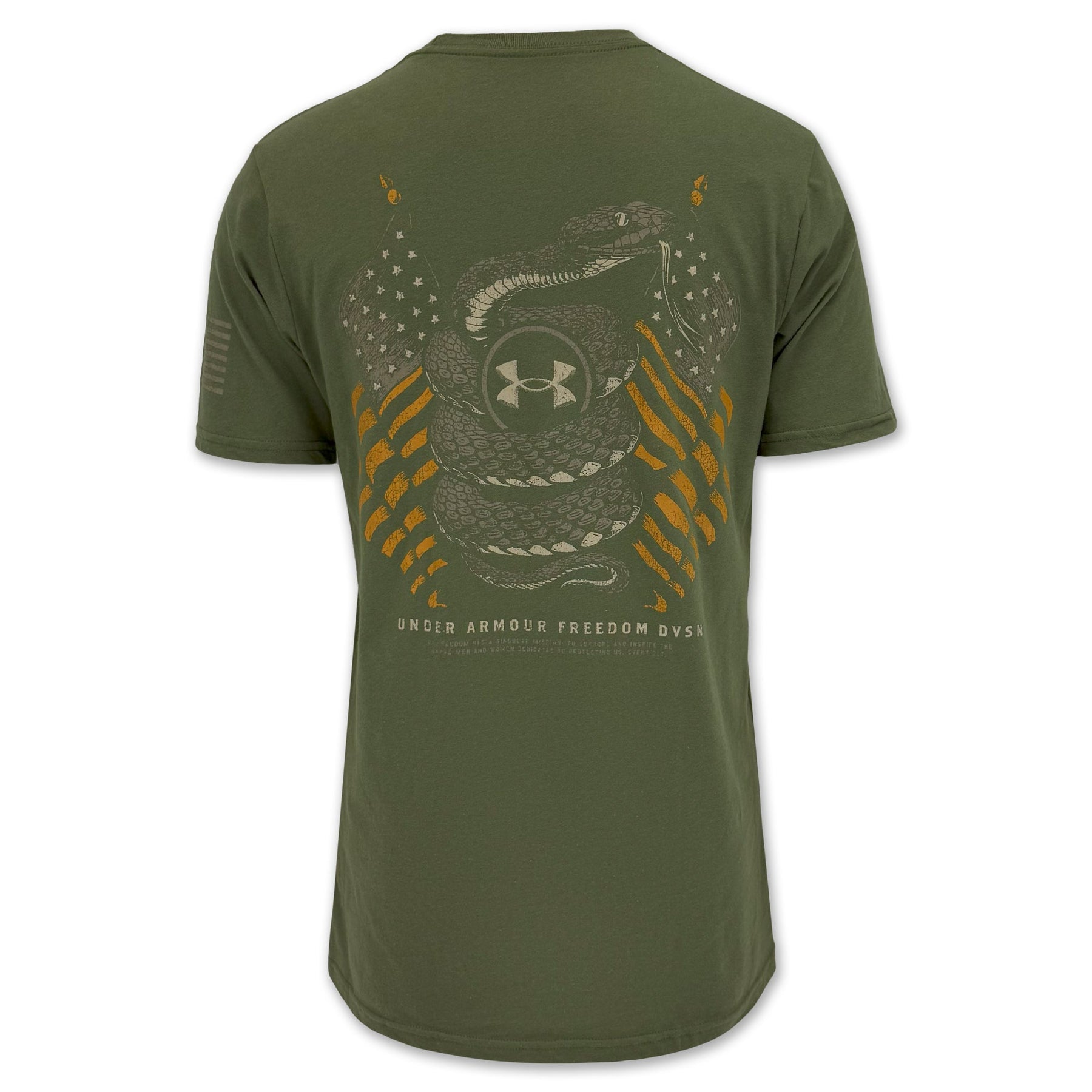 Amp up your patriotic flair with the Under Armour Freedom Snake Flag T‑Shirt — featuring a striking flag-wrapped snake graphic that blends freedom with tactical edge. Craft for durability and comfort, this tee delivers UA’s signature quality for everyday wear with bold style.