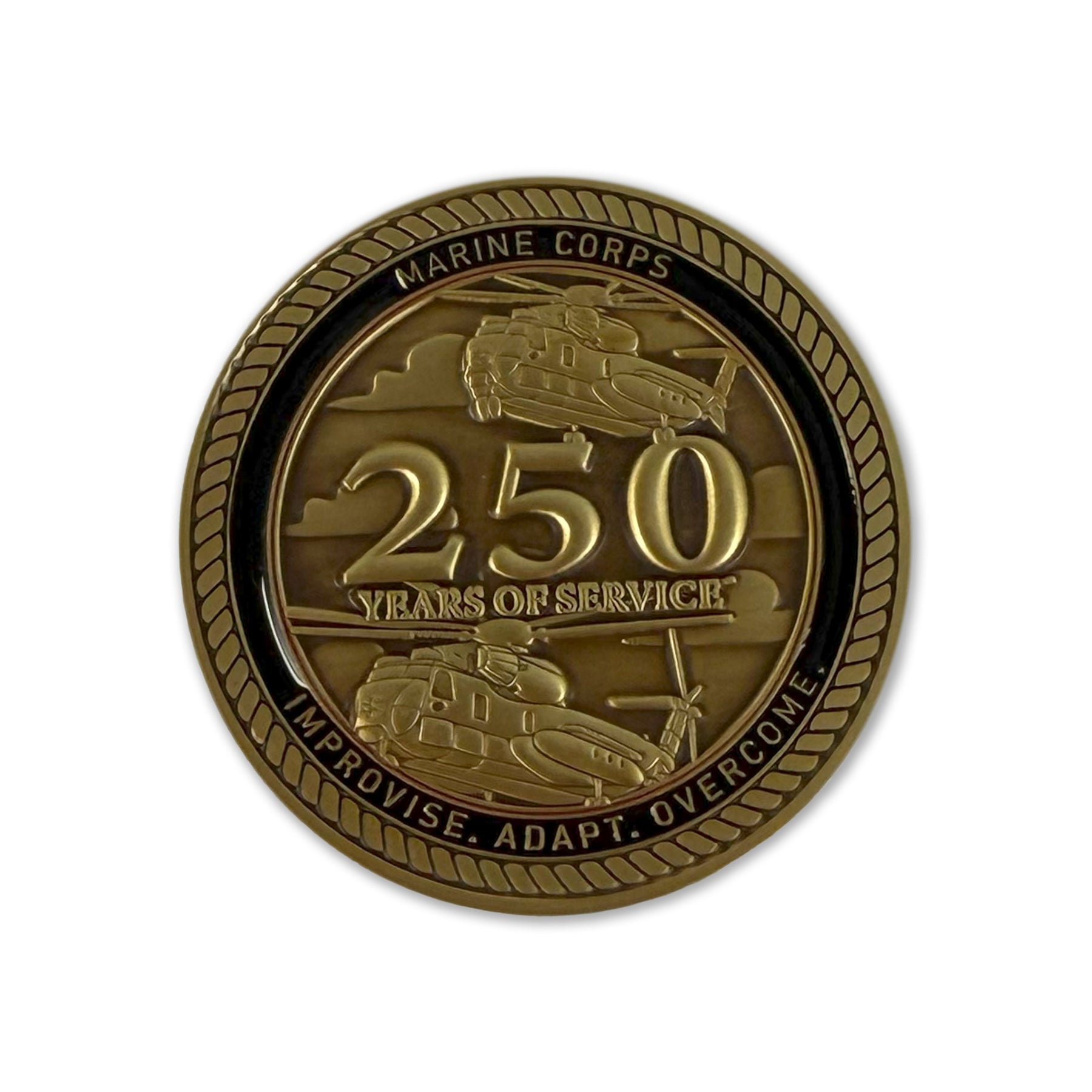 GreggR Very pleased with my purchase of the United States Marine Corps 250th Challenge Coin. It's a very sharp looking coin, the price was good and it arrived quickly. Would highly recommend this Coin to a friend.