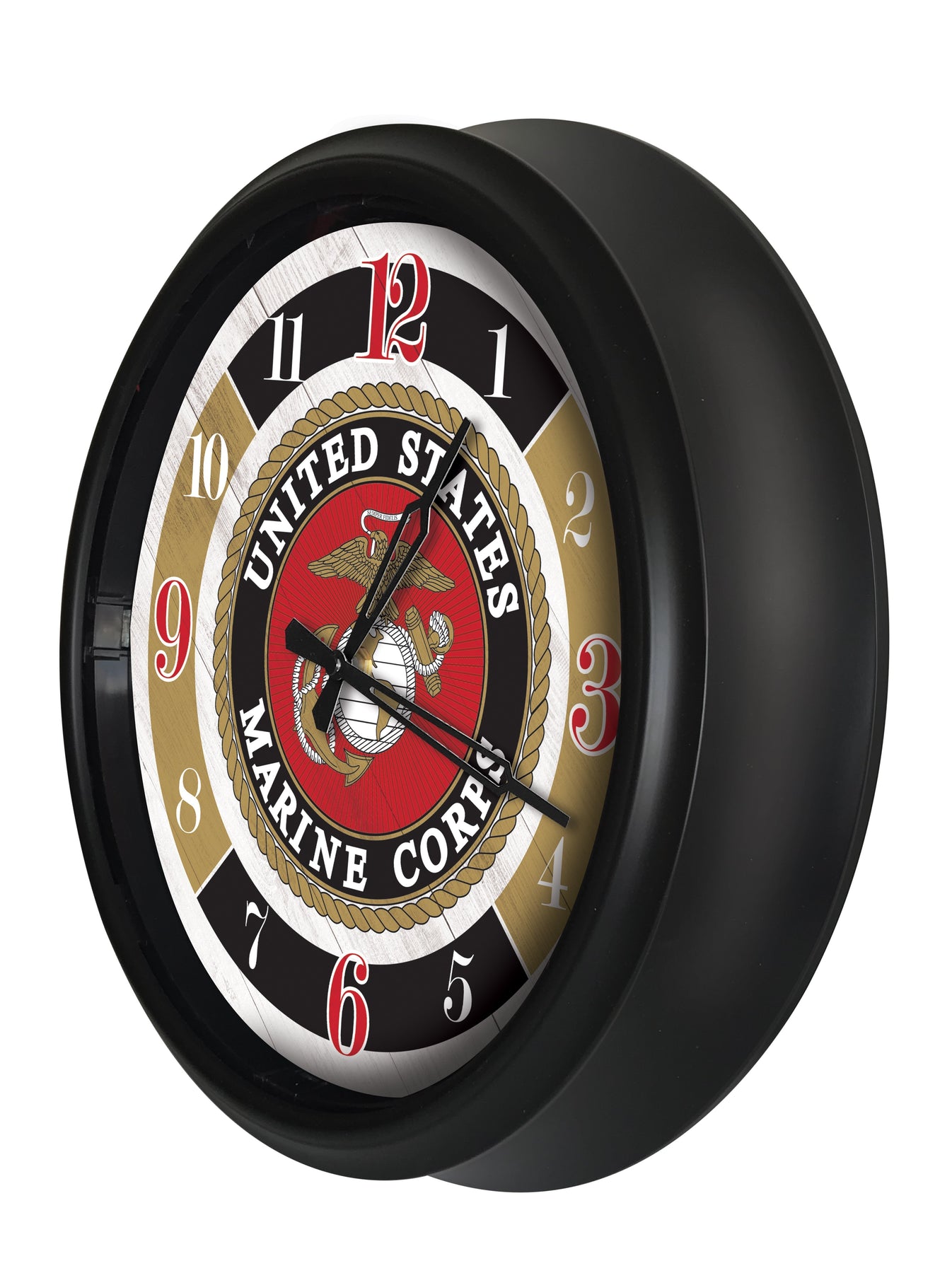 The United States Marine Corps Indoor/Outdoor LED Wall Clock showcases vibrant, full-color UV printed artwork that makes it a standout piece in any setting, whether indoors or outdoors. Its fully weather-resistant construction ensures it can brave the elements without compromising its functionality or appearance. Elevate your space with this distinctive timepiece, proudly representing the United States Marines!