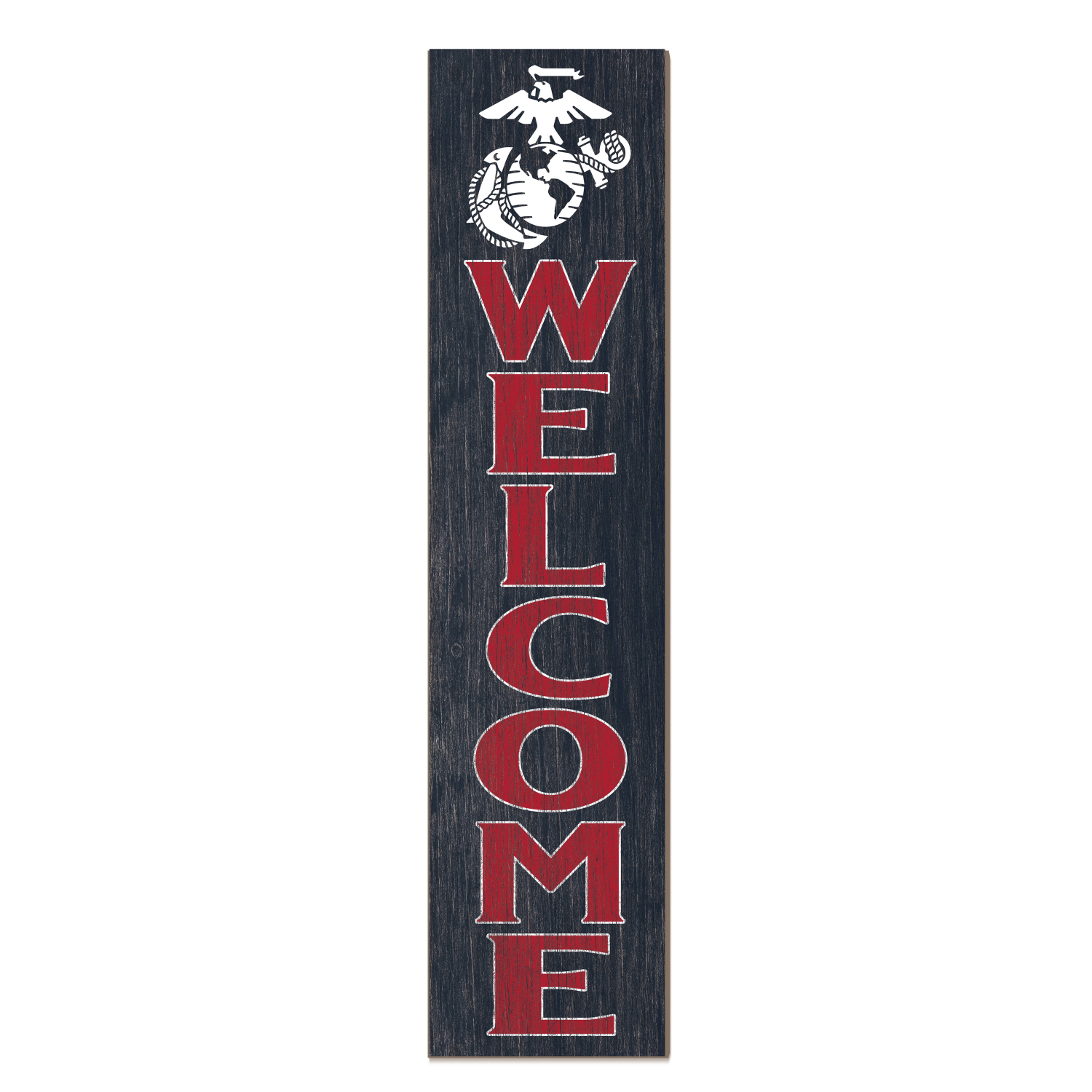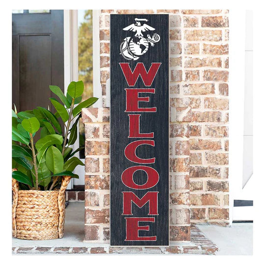 Display your Marines pride with this unique welcome sign! This sign is called a leaner because it is designed to sit and lean against an entryway or wall.