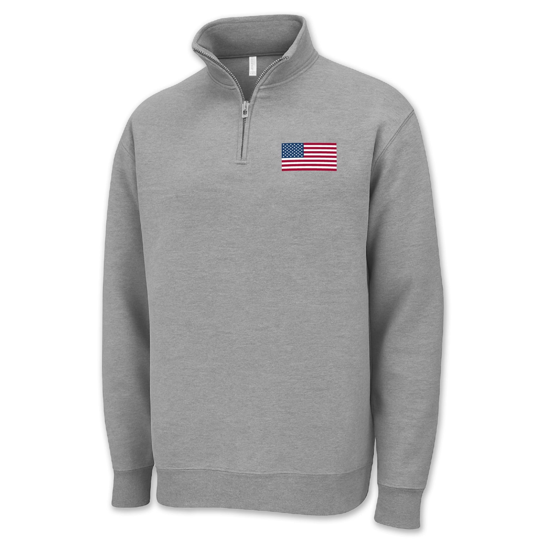 Layer up with pride in the USA Flag Left Chest 1/4 Zip — made from soft, midweight fabric and finished with a clean American flag graphic on the chest. Perfect for showing your patriotism in classic, everyday comfort.