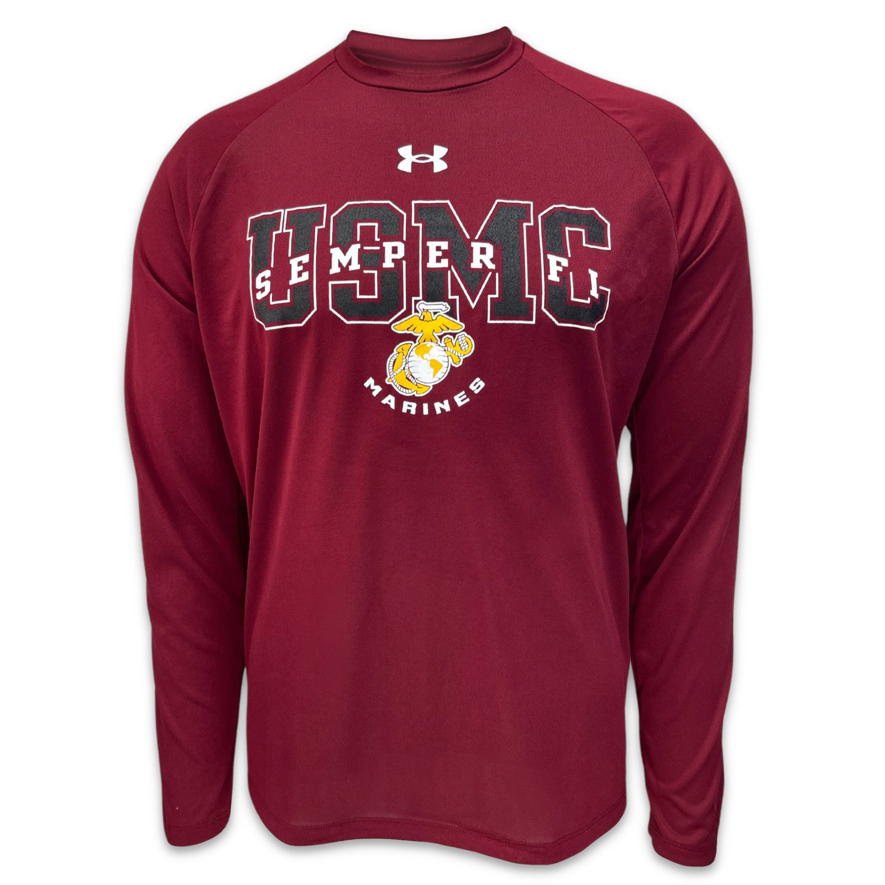 Stay warm and show your Marine Corps pride with the USMC Under Armour Semper Fi EGA Tech Long Sleeve T-Shirt. Crafted from lightweight fabric, this t-shirt features the iconic Semper Fi and EGA graphics, making it a stylish and comfortable tribute to the United States Marine Corps. Whether you're hitting the gym or braving the elements, this tee is a must-have for any proud Marine or supporter!